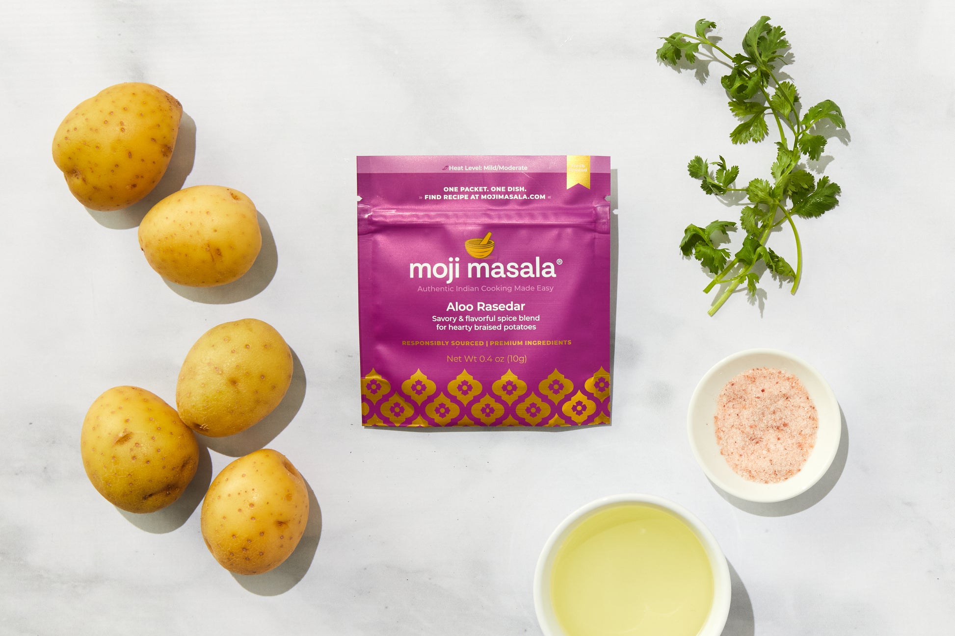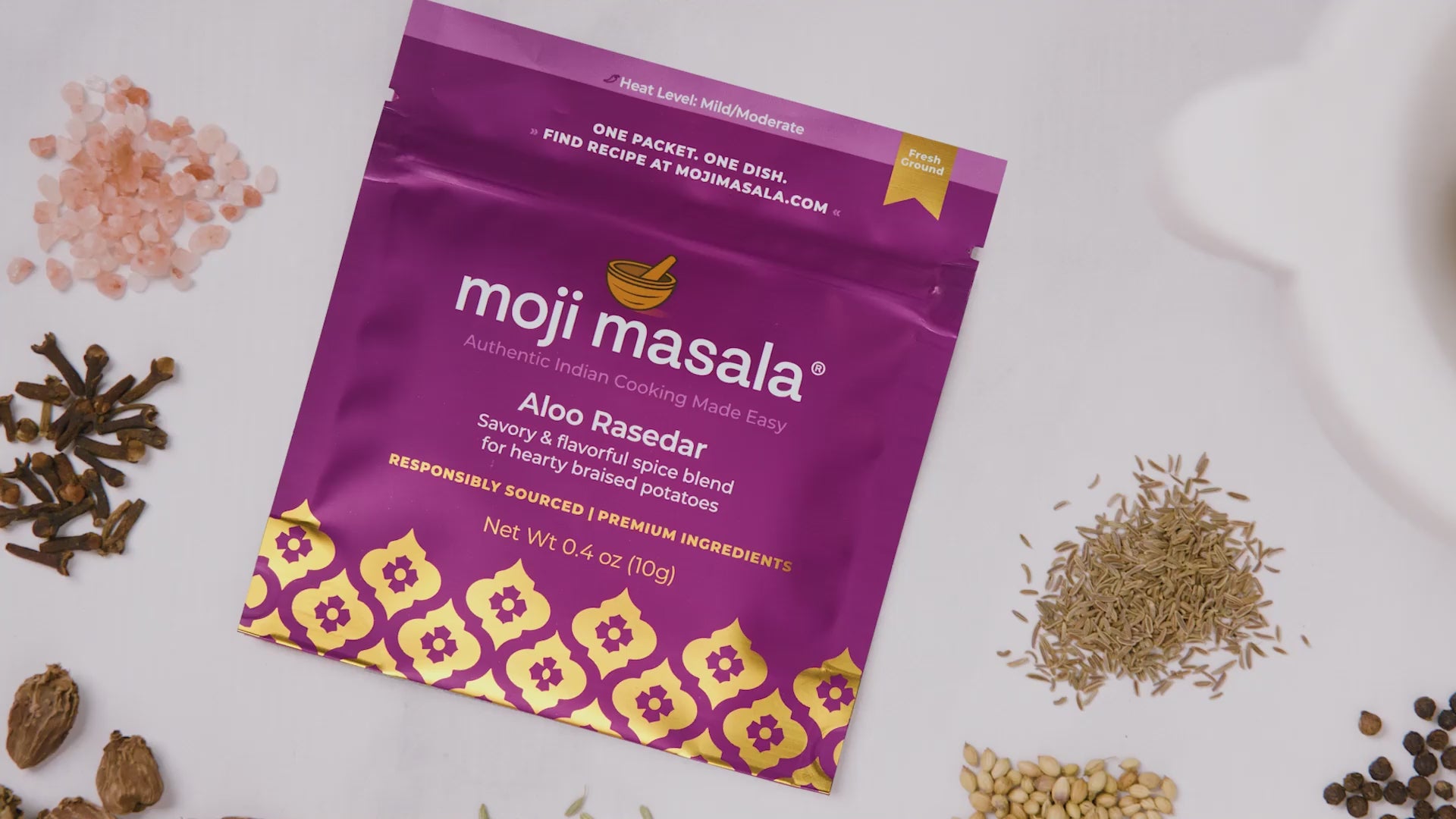 - Aloo Rasedar Masala: This aromatic spice blend adds rich flavors to potatoes, creating a comforting curry that’s perfect for any meal. Moji's Potato Curry Blend is simple, flavorful, and packed with traditional Indian spices.